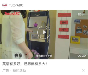 不超过30秒的视频广告在WiFi下自动播放,是更受广告主欢迎的广告形式之一,广告内容立体、鲜活,广告点击率保持领先。视频广告可在知乎APP首页和问题页中呈现。